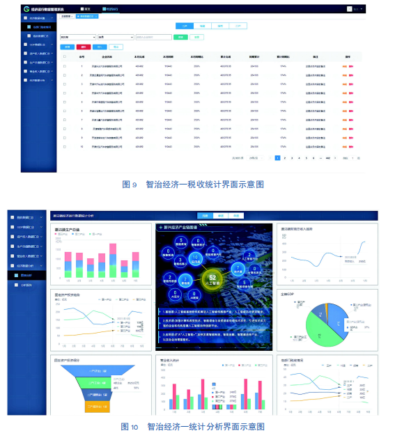 目前葛沽镇域级数据薄弱,长期以来,葛沽镇在数据使用上一直存在着痛点:一方面,镇级政府积累了大量居民、企业、产业、政务的一手数据,但没有统一的数据平台进行管理,导致这些原始数据分散在零散的设备中,无法有效利用和充分分享;另一方面,发改、工信、科信、工商的基础数据无法在街镇级政府有效打通,所以街层面目前并没有较为全面、多维的经济数据统一管理能力,这对街镇级了解、掌握和管理经济工作带来了较大的阻力。智治经济为葛沽镇与经济统计相关的科室部门提供数据采集、录入、分析的信息化工具(见图9),它将为领导驾驶舱经济运行板块提供更加精细化和实时的分析数据依据(见图10)。