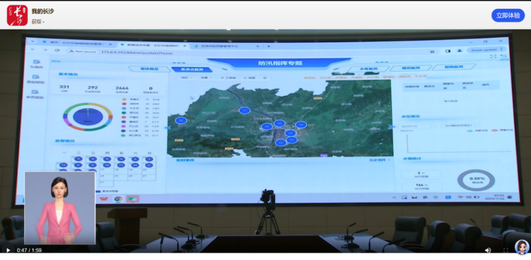 (2)进一步强化了防汛感知监测和智能预警能力。一是数据融合,密织全域感知“神经元”。以 “一屏统览”重塑防汛预警场景,整合336条城市道路、31个桥梁涵洞、8个倒灌小区等历史易涝点,以及300 座重点水库、38个堤垸数据,关联周边1126路实时视频与749个感知设备,逐点位配置智能算法,实时捕捉内涝隐患与水位波动,实现防汛数据要素“一网归集”。二是智能预警,跑出应急响应“加速度”。突破传统人工巡查模式,启用 “防汛预警发布 + 积水算法启动” 智能机制,融合气象预报、易涝点监测等多维数据,重点在夜间精准及时预报城市内涝,定位风险区域。自场景上线以来,已核准防汛预警16条,通过交警群发布处置指令16条、通报应急部门处置16次,实现风险隐患“秒级响应、高效处置”,防汛效率显著提升。三是拓展场景,激活实时预警 “新形态”。实现预警精准触达,预警信息经应急确认后,定向推送至积水点周边3公里范围内手机用户。多路段积水超10厘米时,向市民发出短信预警提醒,让群众提前做好防范准备。四是惠民利企,打造社会应用 “新范式”。拓展防汛预警社会化场景应用,实现与百度地图深度联动,通过地图导航实时发布城市内涝信息,引导市民避让内涝点;携手中国人保长沙分公司推进“车辆涉水救援与理赔佐证场景政务数据授权运营”落地,实现政务服务与社会应用深度融合。