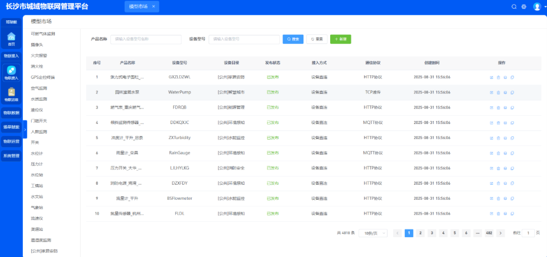 (3)公共设备模型复用。融合4818类成熟物模型参数,全市各单位对于同类型设备可直接复用接入。