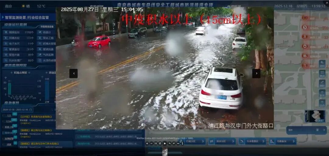 应用深度学习技术,实现对监控视频中积水深度、范围的自动识别与提取,如图7所示,将视频资源转化为结构化态势数据,支撑从风险感知到调度处置的全流程闭环管理,提升内涝识别的实时性与准确性。